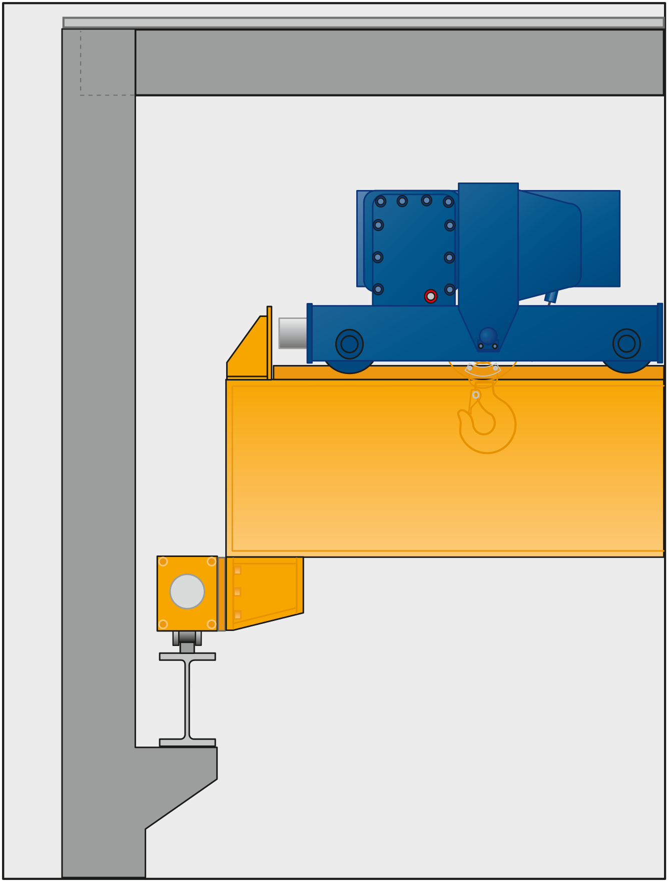 Het toebehorenprogramma van ABUS biedt daarnaast tal van speciale uitvoeringen voor specifieke oplossingen. Dubbelligger-loopkranen zijn uitgevoerd met gelaste kokerbalken. Alle profielen van de hoofdligger en wielkasten zijn computer-geoptimaliseerd en combineren zo maximale prestaties met een relatief laag eigen gewicht. Voordelen die statisch en financieel dubbel meetellen.