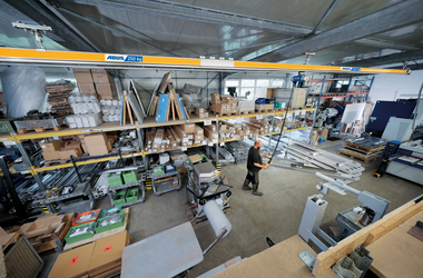 De monorailbaan ESB van ABUS is gespecialiseerd in het ter plaatse hijsen en het lineaire transport van het ene naar het andere punt. Door de uitbreiding met bochtstukken beweegt het hijswerktuig naar wens door de hele hal. Zo kunnen werkplekken met elkaar worden verbonden of kunnen machines worden verplaatst