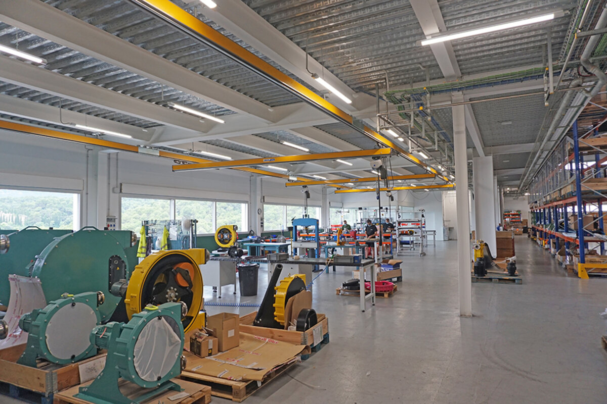 HB suspended rail systems were chosen as the solution to make work more ergonomic as well as more effective. The HB suspended rail system is based on a modular design that can be adapted to almost all space requirements and this is due, among other things, to the different options for suspensions and mountings of the cranes. A total of 3 EHB cranes have been installed in the assembly area: one for each workstation. The HB systems are mounted directly onto the rolled section girders of the building.