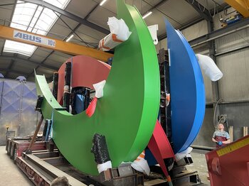 De monumentale constructies worden in elf segmenten van elk 8 x 3 meter geleverd aan de werkplaatsen van Chiarizia en wogen per element tussen 1,4 en 3,5 ton. Na de montage bereikte de totale installatie een indrukwekkende breedte van 29 meter en een hoogte van 13 meter.