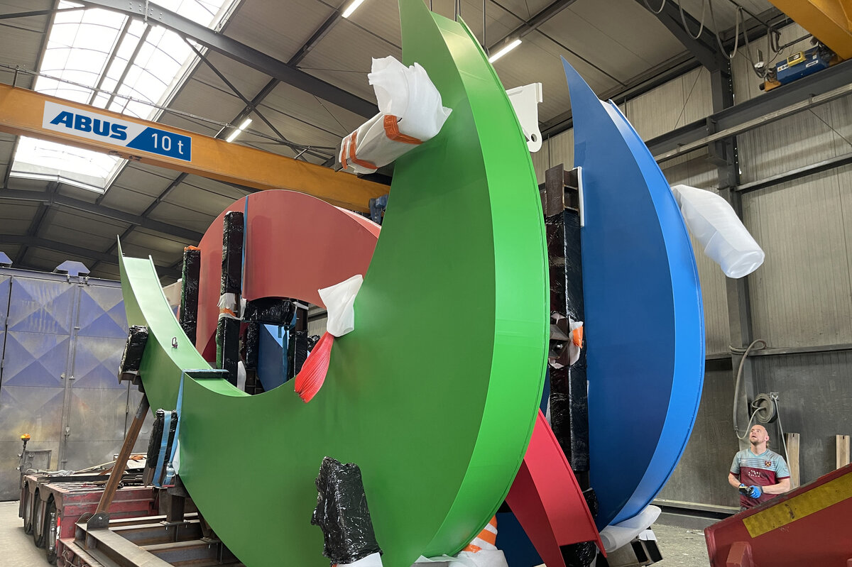 De monumentale constructies worden in elf segmenten van elk 8 x 3 meter geleverd aan de werkplaatsen van Chiarizia en wogen per element tussen 1,4 en 3,5 ton. Na de montage bereikte de totale installatie een indrukwekkende breedte van 29 meter en een hoogte van 13 meter.