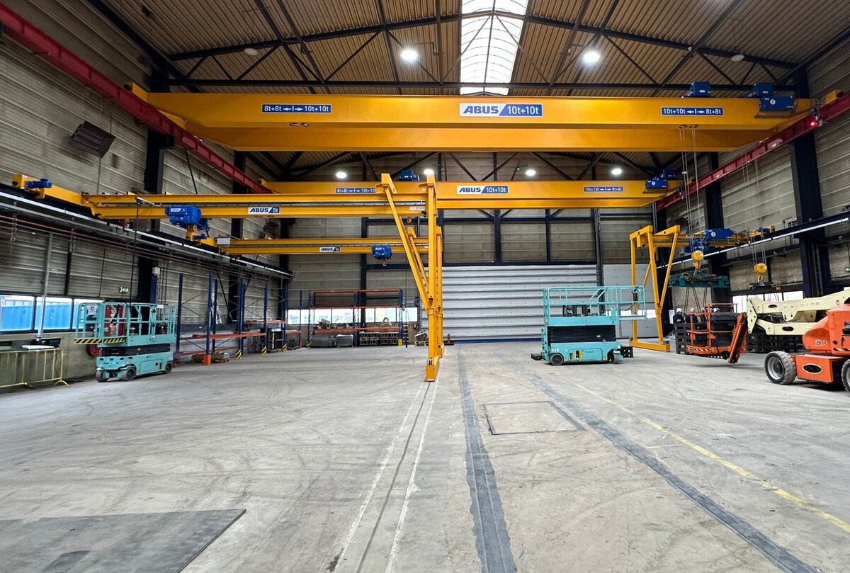 Bij Hollandia in Krimpen aan den IJssel – specialist in het ontwerpen en bouwen van complexe staalconstructies – levert ABUS Kraansystemen een belangrijke bijdrage aan de dagelijkse werkzaamheden in de productielocatie. In een van de ruime hallen van het bedrijf zijn verschillende kraansystemen geïnstalleerd om het zware staalwerk veilig, nauwkeurig en efficiënt te kunnen verplaatsen.