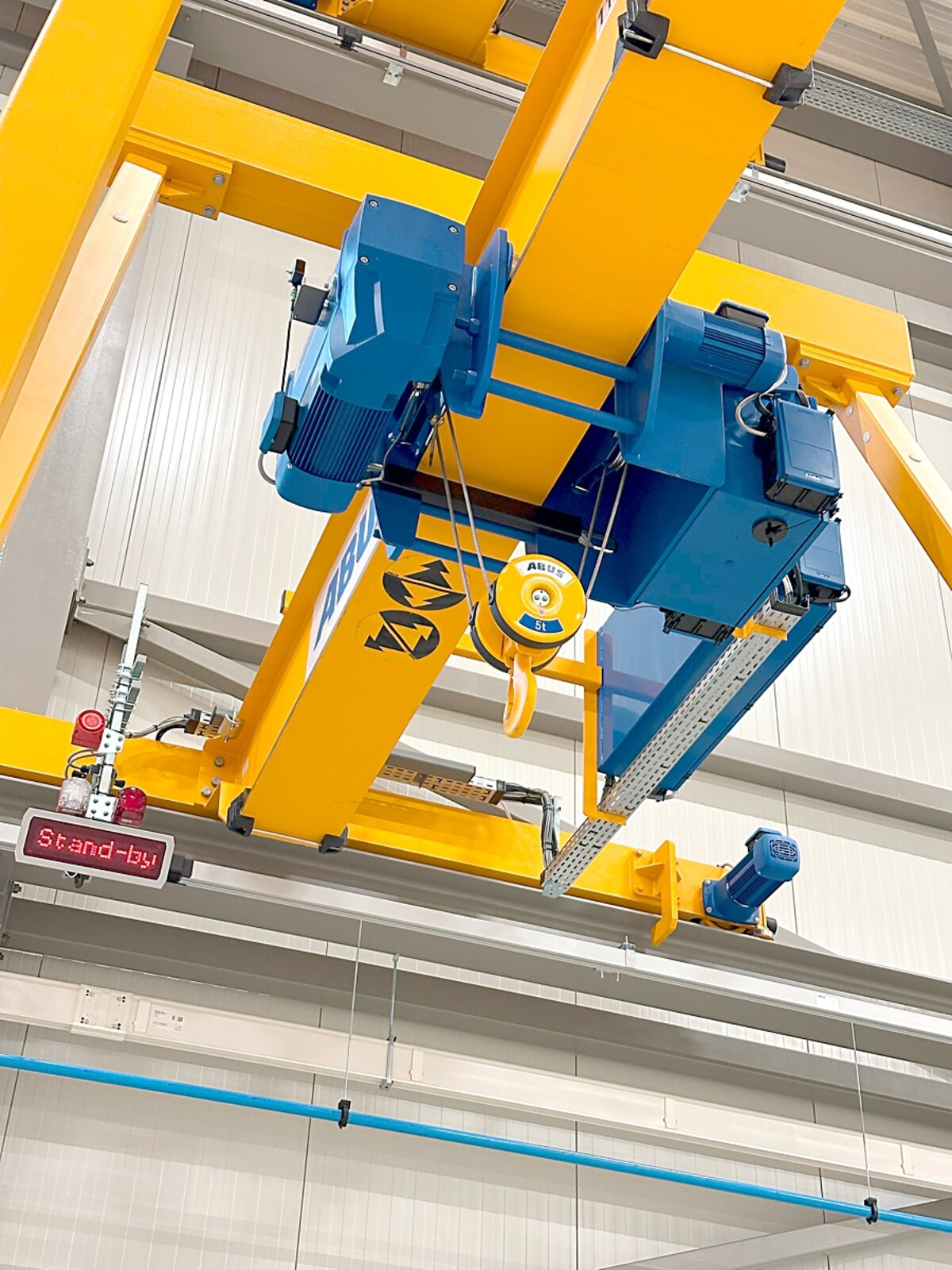 De ABUS kranen worden gebruikt in de assemblagehallen, waar ze essentieel zijn voor het verplaatsen en positioneren van deze zware en complexe onderdelen. Met een overspanning van bijna 28 meter kunnen de vijf Enkelligger Bovenloopkranen alle grote onderdelen binnen de productiehal bereiken, wat de efficiëntie verhoogt en de productietijd verkort. De Enkelligger-halfportaalkranen bieden extra flexibiliteit voor precisiewerk, zoals het assembleren van treinen en andere geavanceerde mechanische systemen.